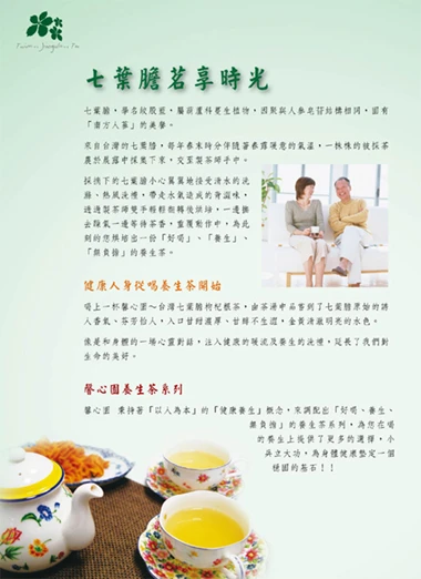 馨心園秉持「以人為本」的「健康養生」理念,來推出「好喝、養生、無負擔」的養生茶系列。
