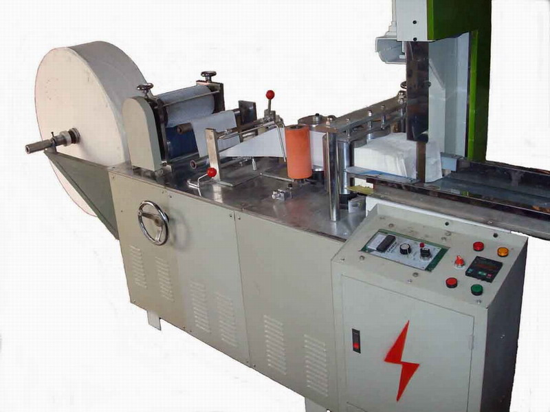 餐巾纸彩色印刷压花折叠机7部份系统组成:原盘纸张力自动输送、压花[自动恒温加热]、印刷[水墨]、纵向折叠、压送调整、横向折叠、带锯切断[配自动磨刀] -