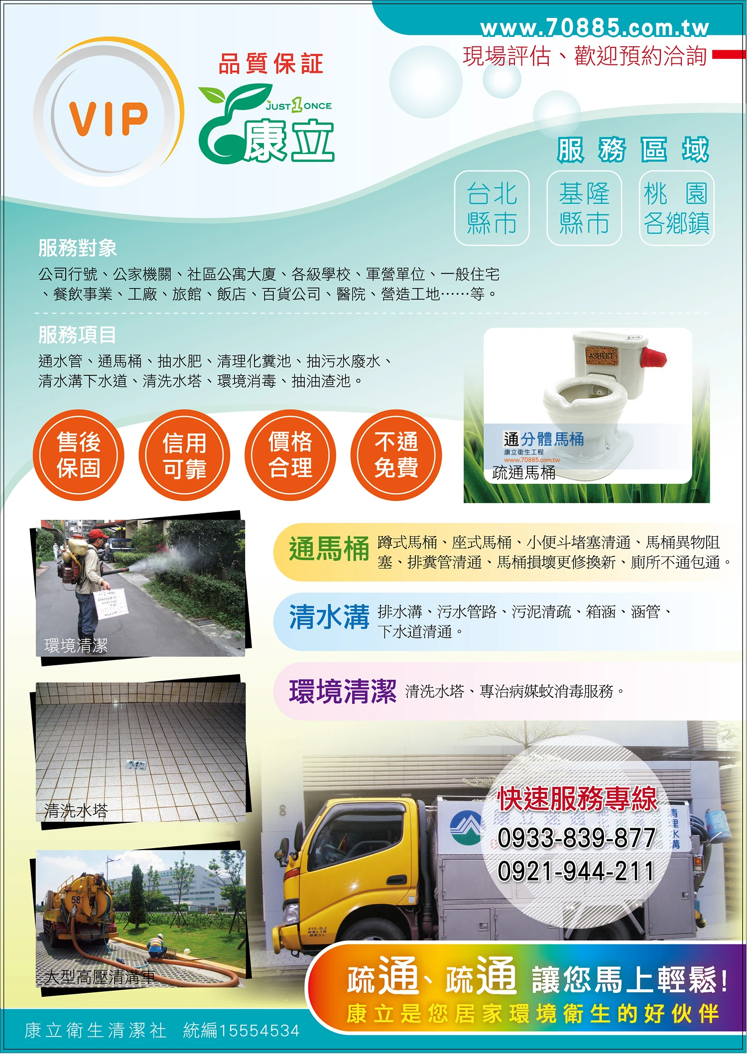 疏通~~~~疏通~~~~讓您馬上輕鬆 服務對象: 公司行號、公家機關、社區公寓大廈、各級學校、軍營單位、一般住宅、餐飲事業等。歡迎來電預約洽詢,長期配