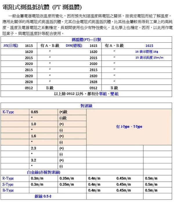 提供高品質各類型熱電偶、保護管、電熱線、補償導線、對素線…等。供應予 -