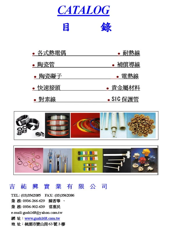 提供高品質各類型熱電偶、保護管、電熱線、補償導線、對素線… 等。供應予學術界、傳統產業、科技工業使用。公司本著專業、誠信、永續經營,之理念服務所有客