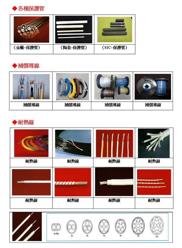 提供高品質各類型熱電偶、保護管、電熱線、補償導線、對素線…等。供應予 -